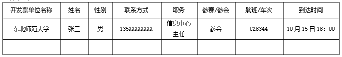 说明:请与会人员认真填写表中信息,大赛组委会以行程单为准,安排会议相关事宜。