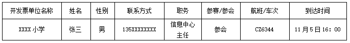 注:请与会人员认真填写表中信息,大赛组委会以行程单为准,安排会议相关事宜。