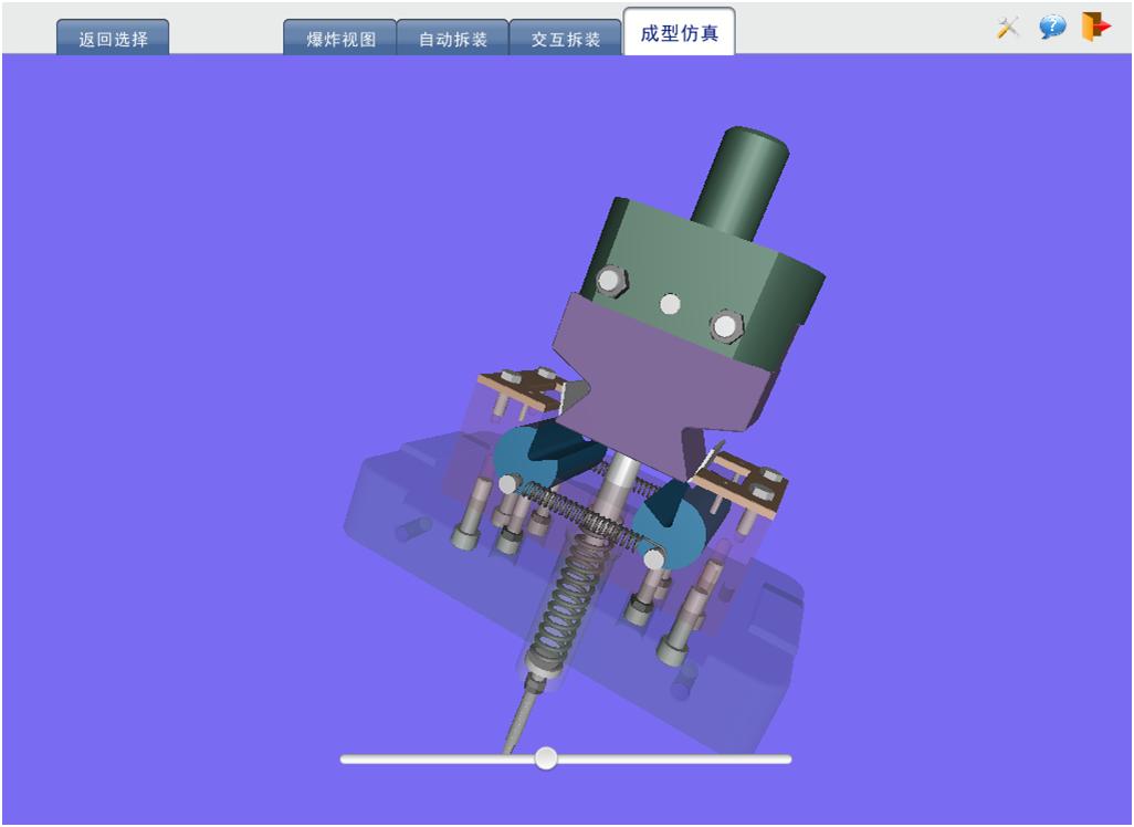 该仿真系统具有爆炸视图、成型仿真、自动拆装、交互拆装、工程图等功能,使学生在虚拟的环境下完成对模具的拆装、测绘,分细节观看各套模具的成型仿真过程。