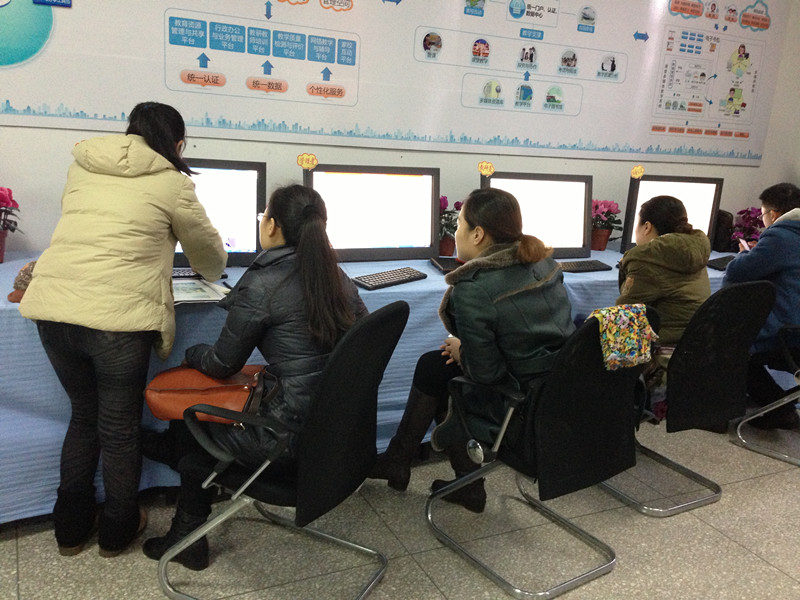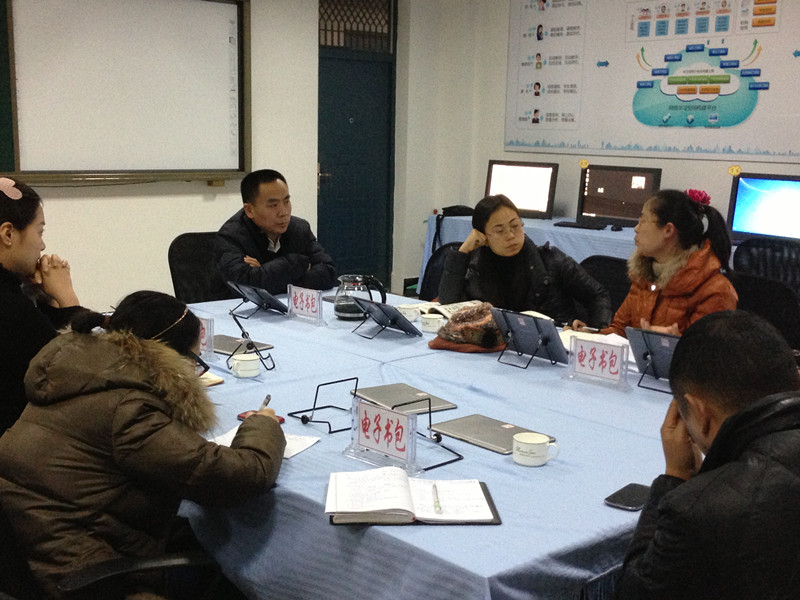 当日下午,钟院长与八位教师开展了智慧课堂集体备课活动。活动中,教师们依次进行说课,包括对教学目标、教学过程设计思路的阐述。钟院长耐心听取每一位教师的陈述,并细心对每一位教师的教学设计进行逐步分析,从激发学习兴趣,培养学生智慧的角度提出宝贵意见和建议。比如,针对一名语文教师的《济南的冬天》这节课,钟院长建议教师不要把课堂教学目标局限于“体会、学习文章的美”,要让学生对作者描述的景色有自己独特的体会和思考,开展任务驱动式教学。钟院长说:“只有将学习任务抛给学生,让学生有独立思考和表达的空间,才能激发他们对学习的兴趣,才能真正实现主动学习,增长智慧;硬牵着学生的思维走,是很难激发学生主动性的。”