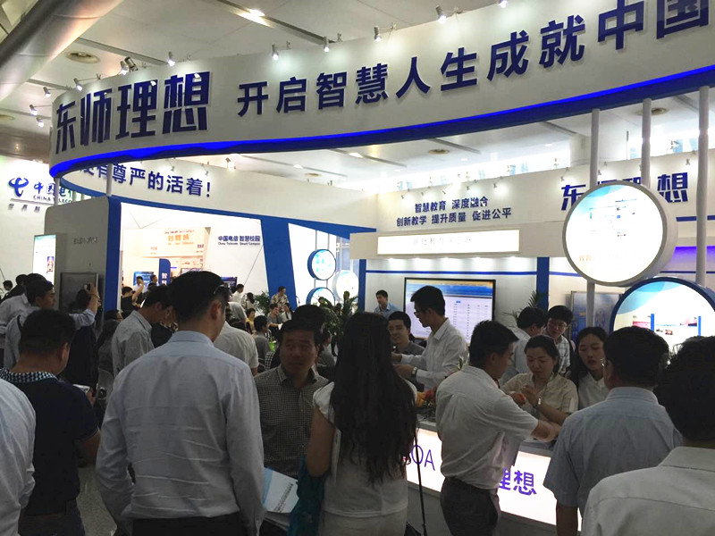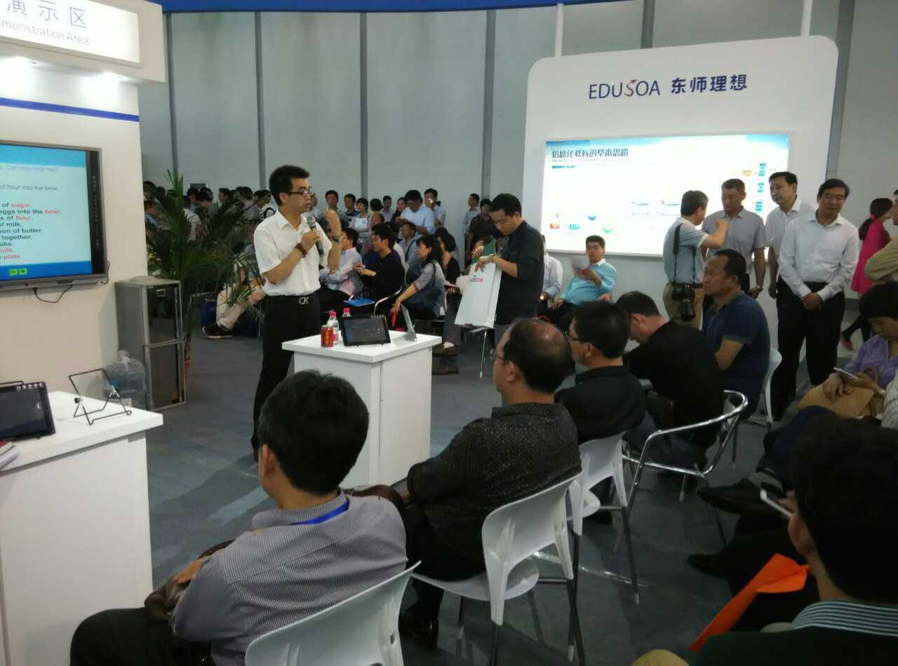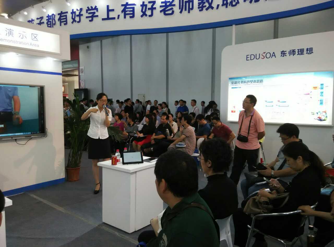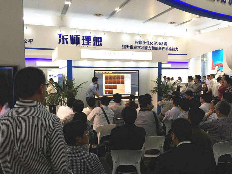 经过认真筹备,东师理想团队及产品今日正式在岛城亮相。本次展会,东师理想展出了包括智慧教室、网络学习空间、电子书包、理化生虚拟仿真实验室、立体教材、数学学科工具、地理学科工具、职业教育在线考试系统、网络学习平台等产品,并专门设立了基础教育、智慧课堂、智慧教育培训及应用推动、智慧教育应用案例、职业教育共五大演示区,以及基础教育、职业教育两大体验区。来自全国各地信息化实验校的一线教师现场进行智慧课堂教学展示成为本次展会的一大亮点。展区中,老师们用自身教学经验向参会者展示信息化教学的强大优势,分享信息化对教学带来的巨大变化,吸引了大量参会者驻足。