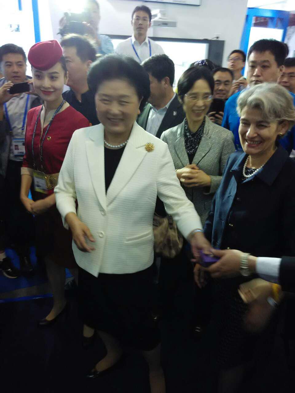 上午,国务院副总理刘延东女士亲临展会现场视察各展位工作,并与参会人员进行亲切交谈。展会内气氛热烈而有序。