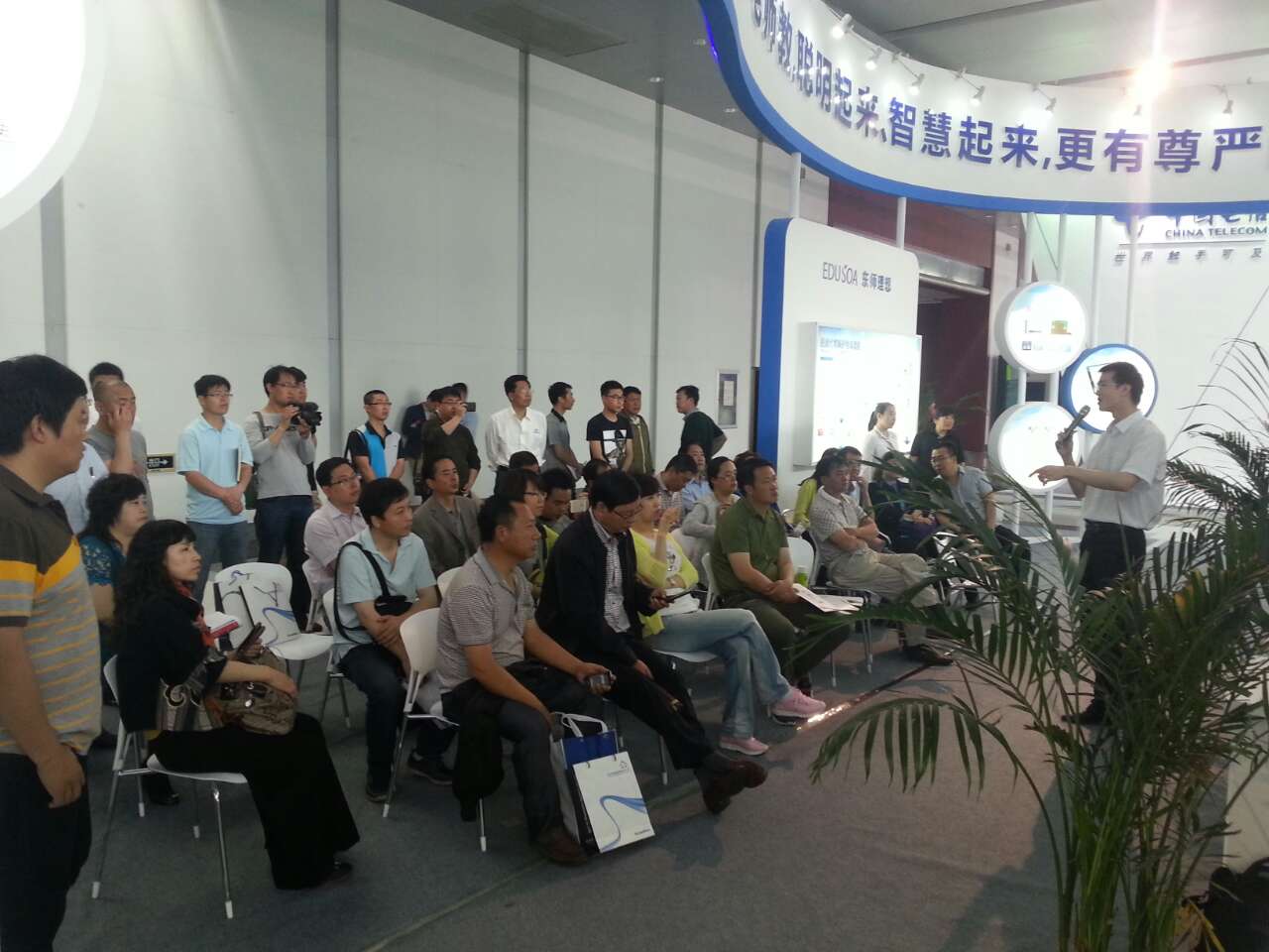 为落实习近平主席和刘延东副总理关于教育信息化工作的重要指示,充分展示中小学信息化建设成果,推进中外教育信息化交流与合作,东师理想携智慧教室、网络学习空间、电子书包、理化生虚拟仿真实验室、立体教材等优秀产品及成果参展。不局限于教育信息化产品的介绍,更注重智慧教育理念的分享和传播;不仅有东师理想工作人员做产品详细介绍,更有来自全国各地的信息化示范校一线教师倾情加盟,现场进行智慧课堂教学展示;不但能听到精彩的展示、详细的介绍,参会者还能够参与其中,进行现场互动,切身感受教育信息化产品为教育教学带来的巨大变化。这是东师理想不同于其他参展单位的特色与亮点。三天来,展位吸引了无数参会者的目光。