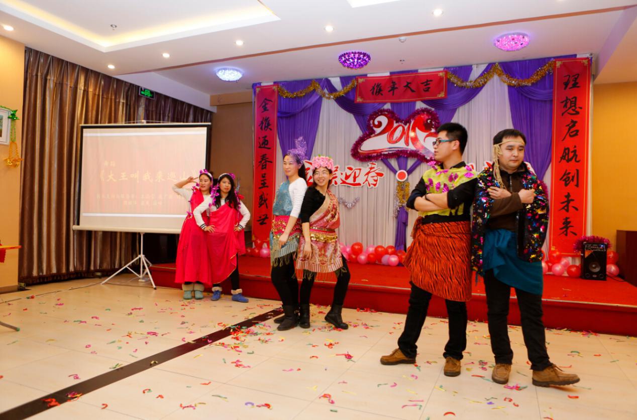 年会节目精彩纷呈,高潮迭起。舞蹈《倍儿爽》一开场就博得喝彩,全场沸腾;脱口秀《我要找对象》诙谐幽默,紧抓年轻人的心思;相声《面试》一上台,就赢得了台下掌声阵阵;霸气的《双节棍表演》充满力量,引爆了现场气氛;舞蹈《月光下的凤尾竹》伴随着优美的音乐,跳出了优雅与欢乐;舞蹈《大王叫我来巡山》轻快活泼,跳出了大家对2016年的憧憬与希望;舞台剧《互联网+西游记之女儿国》节目编排张弛有度、笑点十足、演技超群;大合唱《隐形的翅膀》、《老男孩》唱出了员工激情奔放的欢快心情。