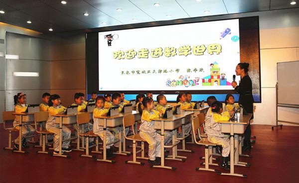 天津路小学张辛欣老师给与会代表汇报了一节电子书包环境下的优质数学课,充分展示了在信息技术条件下,如何给学生提供合作探究、互动交流的新路径、新方法。