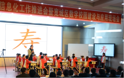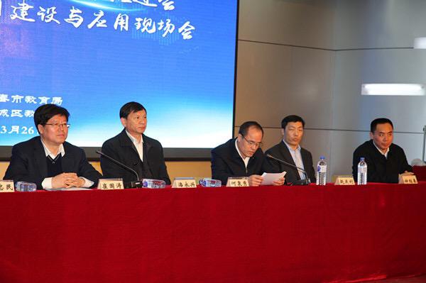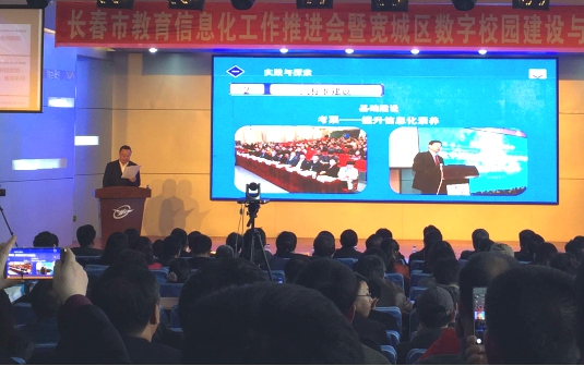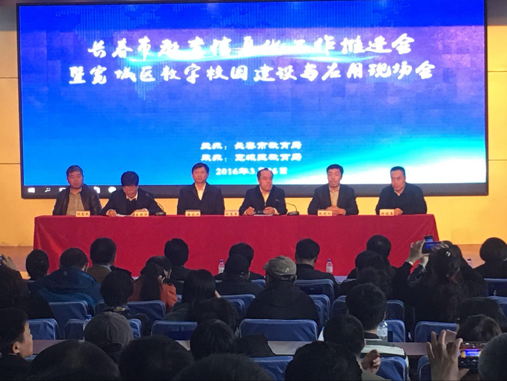 为了全面深入推动长春市教育信息化工作,长春市教育局于2016年3月26日,在宽城区第48中学,组织召开了“长春市教育信息化推进会——暨宽城区数字校园建设与应用现场会”。省教育厅、各市、县(区)教育局及各处室负责人、教师进修学校及部分中小学校长共计350余人参加了现场会。吉林省教育厅潘永兴副厅长,吉林省电教馆馆长刘忠民,长春市政协副主席、教育局局长何泉秀,长春市教育局副局长崔国涛,教育部数字化学习支撑技术工程研究中心主任钟绍春教授等相关领导到会指导工作。