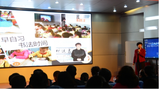 会上,宋家小学王红丽校长从东师理想开发的网络学习空间应用与实践的角度,介绍了网络学习空间是如何将学校特色的“1+x课程”落地,如何开展个性化学习,如何借助空间人人通,实现小学珠心算、书法、开心农场等课程的个性化网络教学,提供了有效支撑教育教学活动的可操作路径;育新小学李鹏飞校长率领她的团队和大家分享了网络研修的故事,介绍如何利用研修平台,采取线上线下混合式研修模式,阐述了如何有效地提高教育均衡发展等问题;东田实验学校李伟校长全面介绍了家校互动的经验和做法。