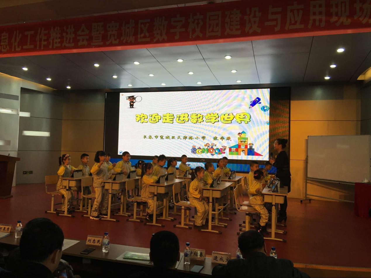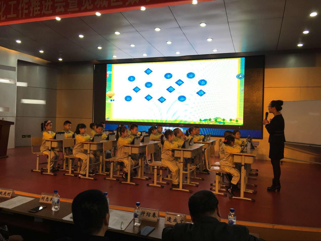 现场会上,天津路小学的张辛欣老师带领她的孩子们展示了一节别开生面的电子书包数学课,获得参会者的高度评价。