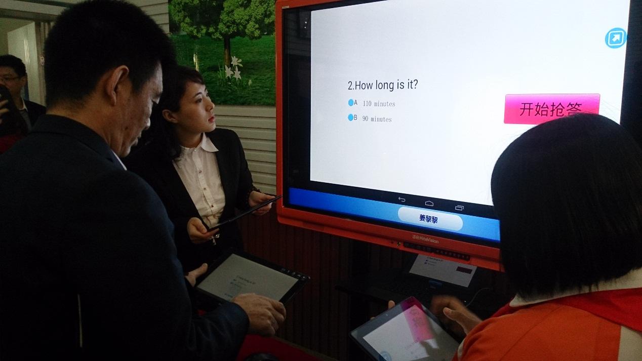 课上,孩子们精神集中,完全沉浸在课堂的愉快氛围里;在互动环节中,孩子们积极配合,踊跃发言。电子书包的各项功能被张老师和孩子们发挥得淋漓尽致,使参会嘉宾们亲身感受到电子书包课堂的魅力!