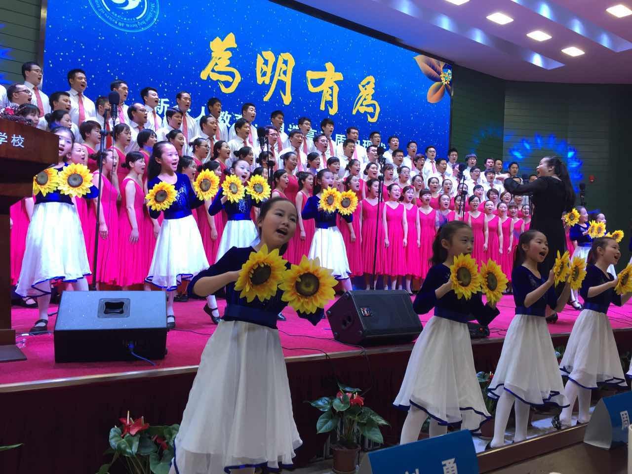 上午9点,“师生风采展示”拉开帷幕,106名的师生合唱团引吭高歌《在灿烂的阳光下》,表现了雁阵团队的精气神;学生表演的舞蹈《花儿朵朵》、原创课本剧《荆楚之恋》,从一个个侧面展现了学生阳光向上的风采,彰显了为明特色课程的丰硕成果。