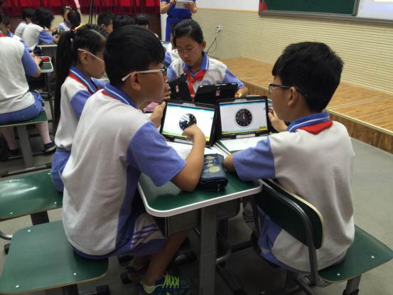 在研讨会中,赵薇老师展示了一节电子书包环境下的数学课——《图形的旋转》。赵老师利用电子书包创造学生个性化学习环境,借助交互电视、平板电脑等现代化教学工具,调动了学生学习的主动性、积极性,大大增强学生的参与度。