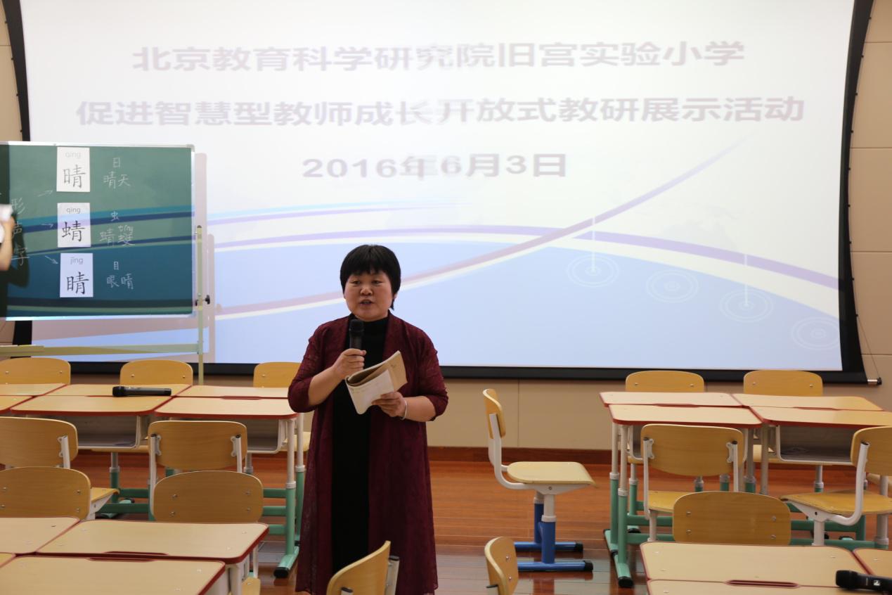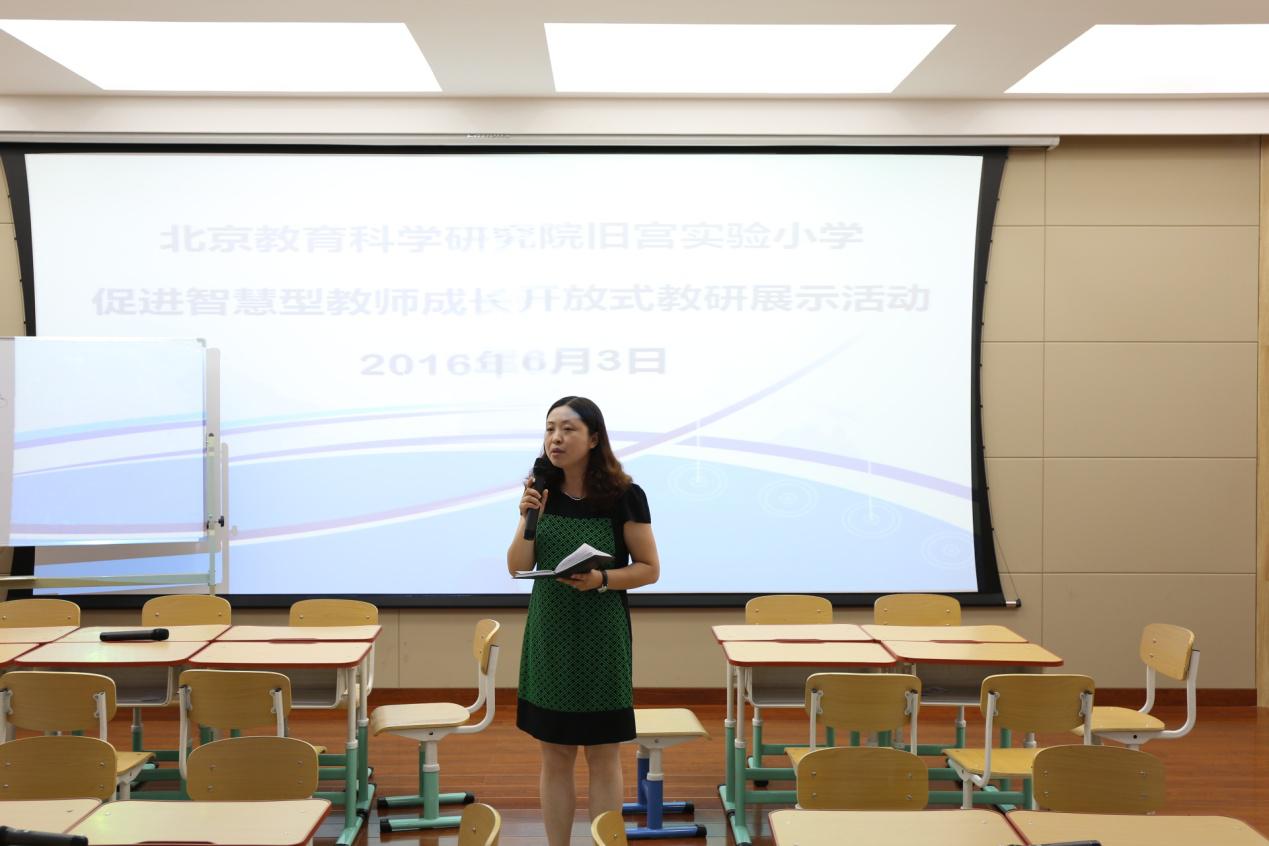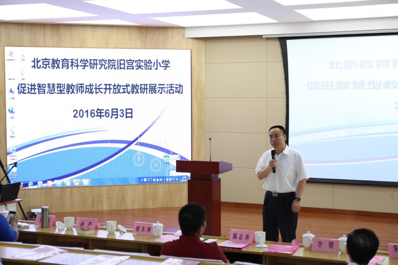 教师是学习发展的第一资源,教师的发展是教育改革的原动力。为了进一步推进教育信息化的应用,促进信息技术与课堂教学融合,探索基于现代信息技术环境下的学生个性化学习模式,北京教育科学研究院旧宫实验小学于2016年6月3日举办了“促进智慧型教师成长的实践与探索交流研讨活动”。