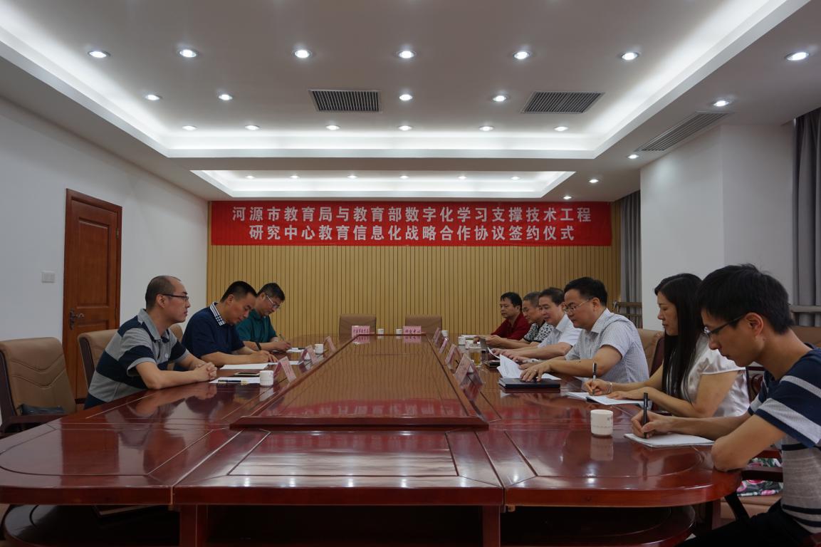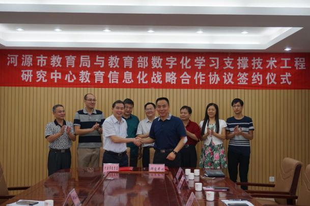 2016年6月28日,教育部数字化学习支撑技术工程研究中心(以下简称“工程研究中心”)与广东省河源市教育局签署教育信息化全面战略合作协议,双方正式建立全面战略合作关系。