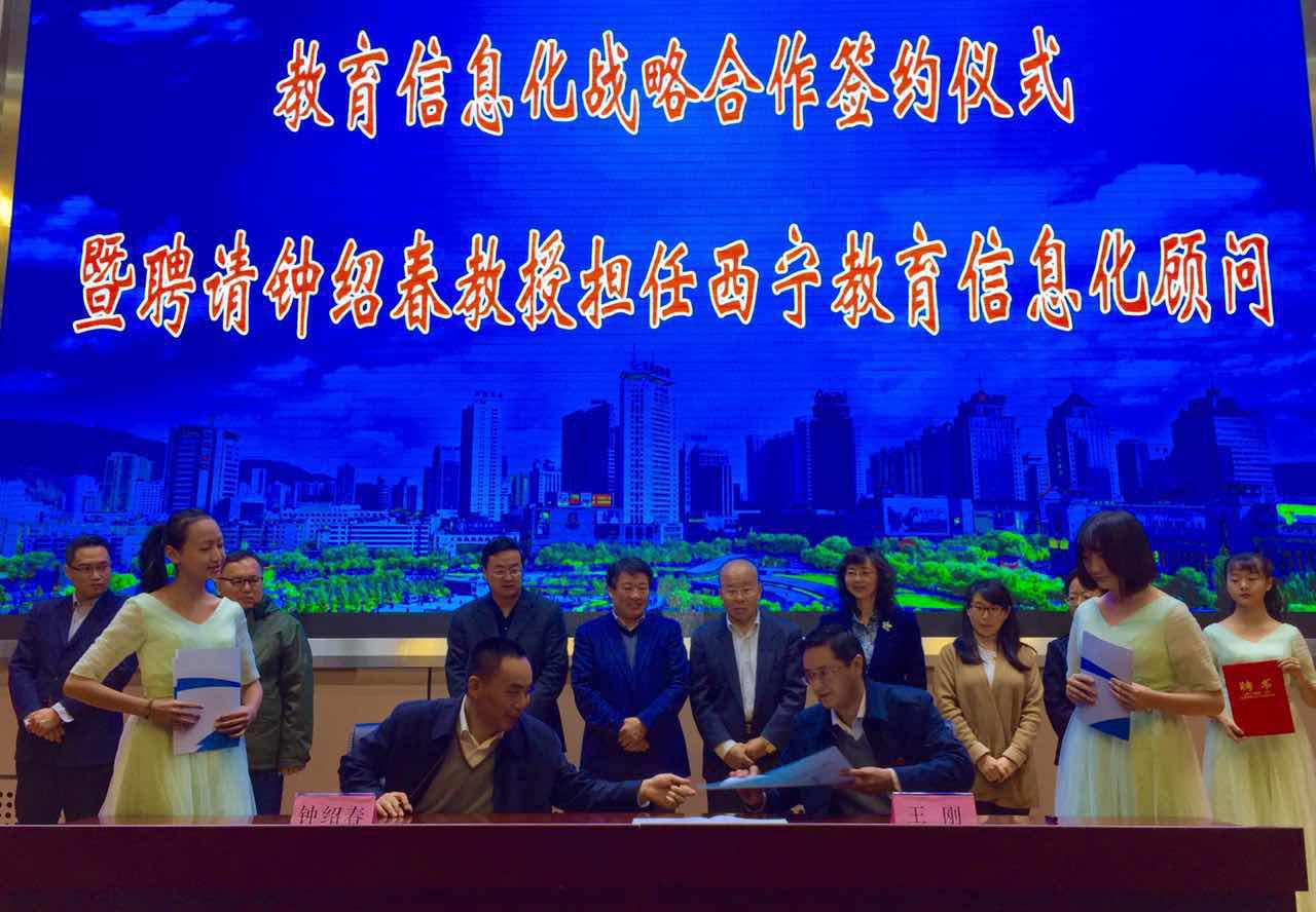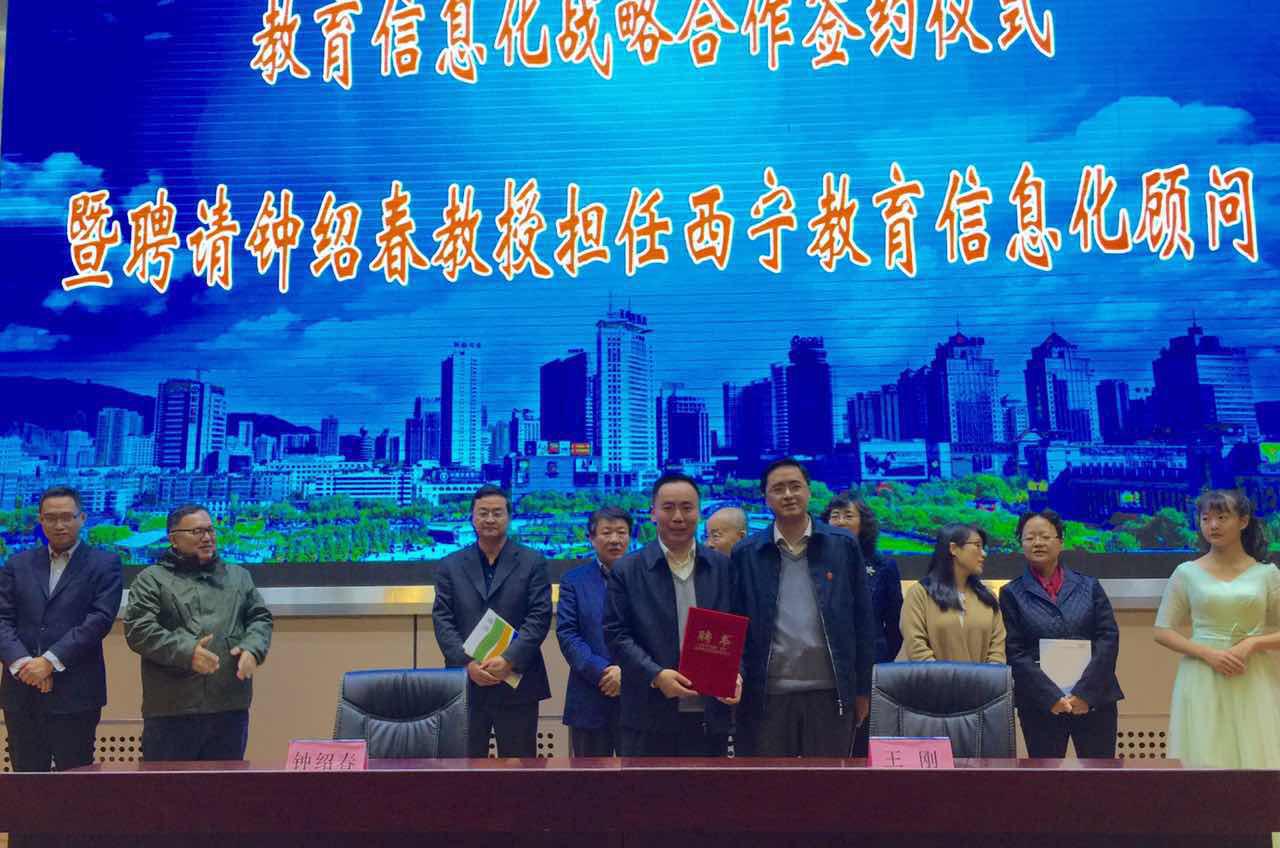 签约仪式结束后,西宁市教育局党委书记、局长王刚与钟绍春教授签订了西宁市柔性引才引智服务协议,并聘请钟绍春教授担任西宁市教育信息化顾问。钟绍春教授根据西宁市教育局工作要求,承担西宁市教育信息化规划,智慧校园建设与应用,“网络学习空间”应用指导,“信息技术与学科融合智慧课堂”指导、教研、培训等工作。