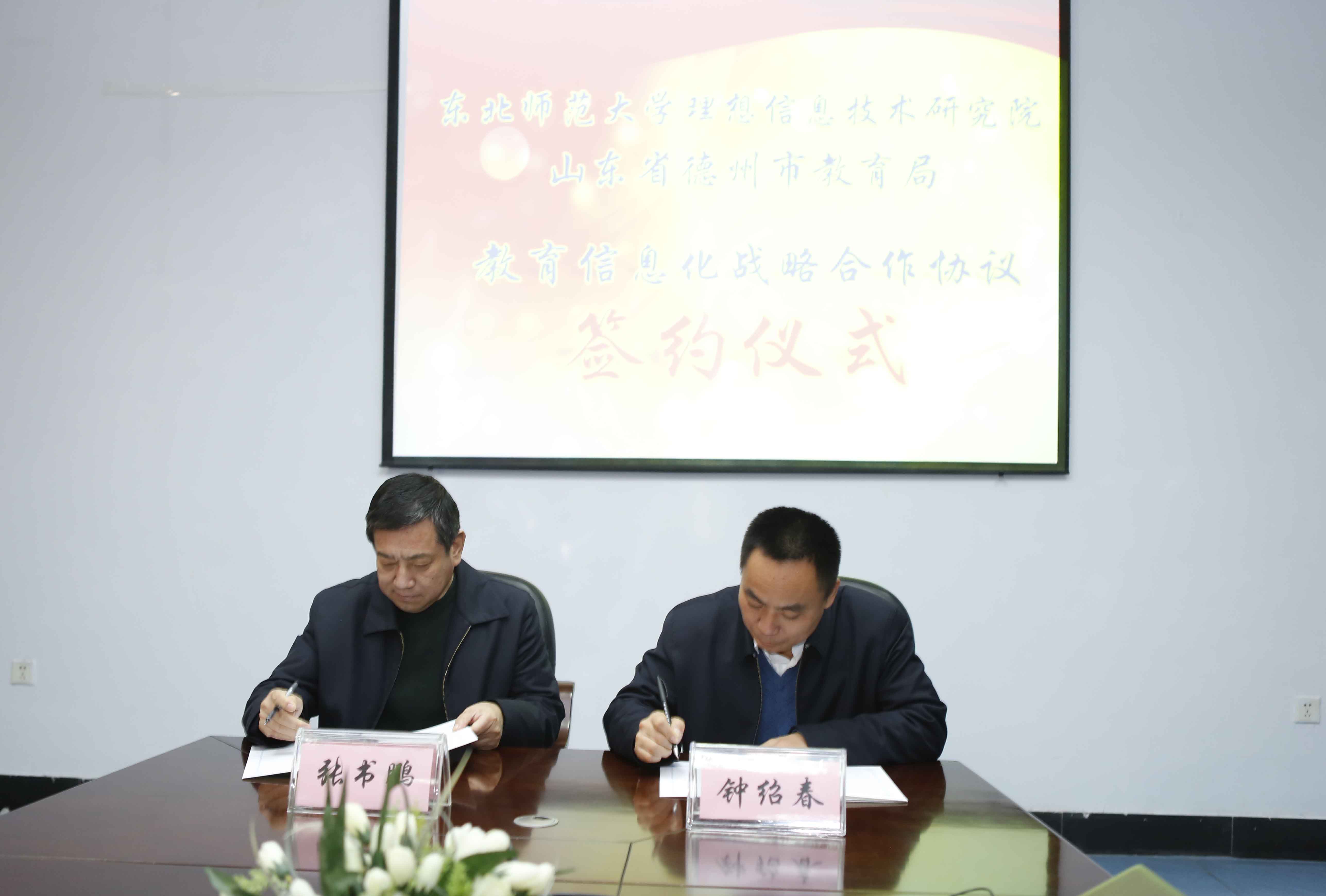 2016年12月9日,东师理想信息技术研究院(以下简称“研究院”)与德州市教育局签署教育信息化全面战略合作协议,双方正式建立全面战略合作关系。